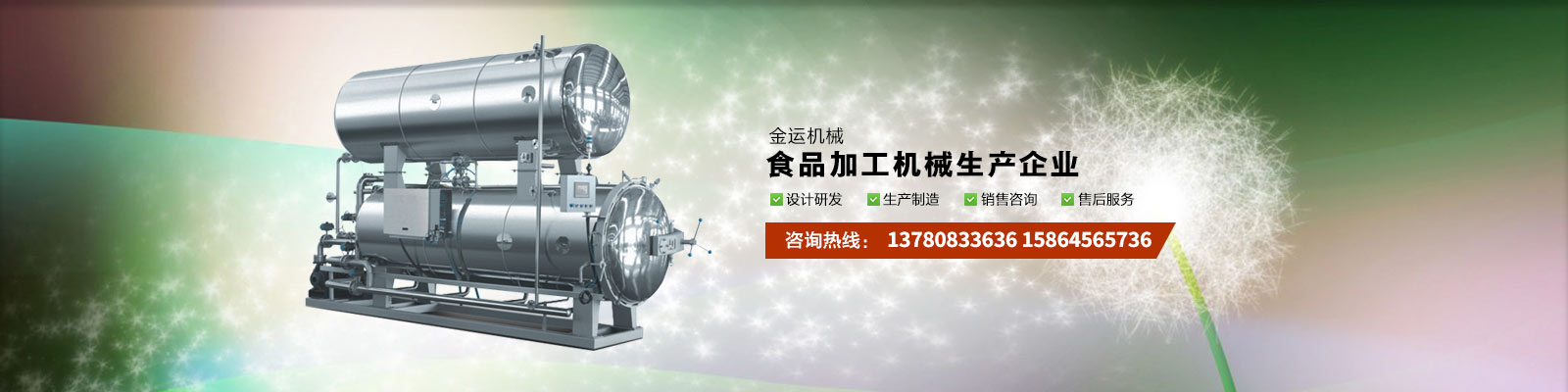 主要產(chǎn)品有:行星攪拌夾層鍋、夾層鍋、壓力煮鍋、各種餡料炒鍋、殺菌鍋(殺菌釜)、巴氏殺菌機(jī)、清洗流水線(xiàn)、風(fēng)干線(xiàn)、真空包裝機(jī)、滾揉機(jī)、斬拌機(jī)、鹽水注射機(jī)、大蒜脫皮機(jī)、大蒜分瓣機(jī)等,廣泛應(yīng)用于各種食品加工、食品殺菌及農(nóng)產(chǎn)品深加工、化工、醫(yī)藥的生產(chǎn)等。可滿(mǎn)足外資企業(yè)、合資企業(yè)及國(guó)內(nèi)大中小企業(yè)生產(chǎn)需求,產(chǎn)品暢銷(xiāo)全國(guó)各地。
